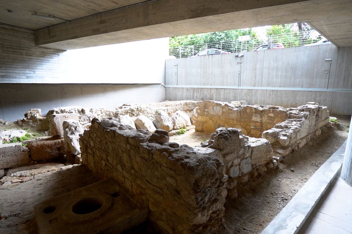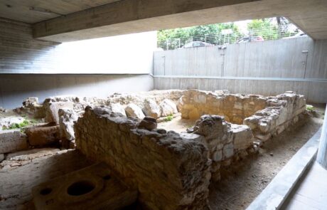 Ιδιαίτερη ενότητα αποτελεί ο χώρος των αρχαίων ευρημάτων, του οποίου εξασφαλίζεται η οπτική αντίληψη από τον χώρο της κεντρικής εισόδου μέσω του κεντρικού ημιυπαίθριου χώρου.